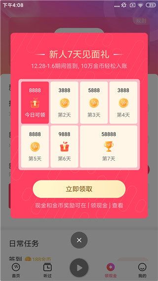 新人就有大红包。每天听书赚钱、签到赚钱、开宝箱赚钱……红包应有尽有,随时提现。